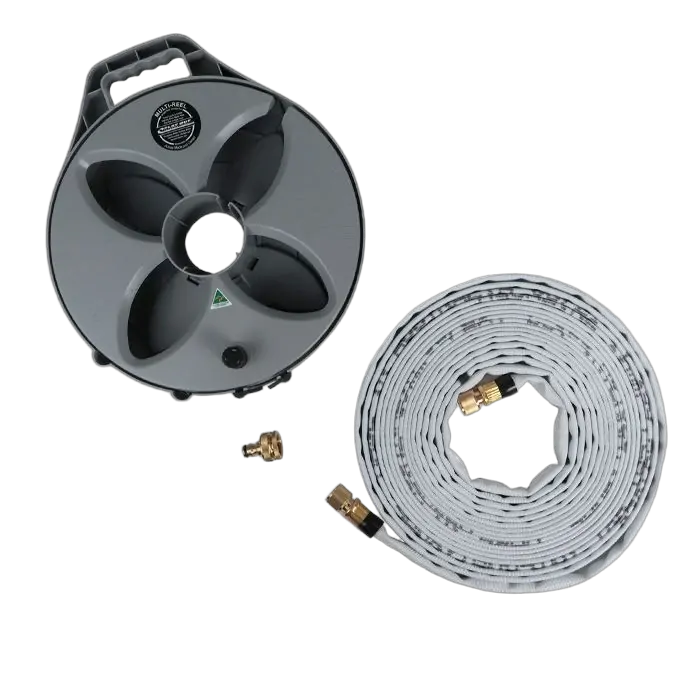This product is the original Flat Out invention. Product designer Peter’s frustration with ordinary hoses connecting to his motorhome drove him to develop this hose system. In essence, Flat Out's caravan and RV drink water hoses are a miniaturised fire hose with a certified taste free liner.