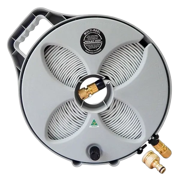 Stored neatly on our Multi-Reel these hoses are an excellent user friendly choice, especially when space is limited. Connect your hose at one end, hold the Multi-Reel handle and walk away to unspool. Setup has never been this easy. As you re-wind, water remaining in your hose is forced out for drip-free, compact storage.