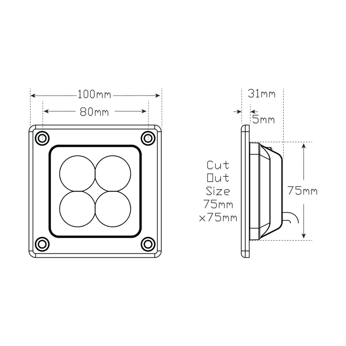 Flood/Reverse Lamp, Recessed Mount, Black E. Coating, 9-30V, Ece Approved, 100X100X5Mm, Blister, 5 Year Warranty