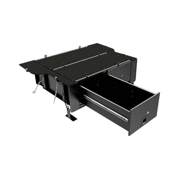 The deck above the drawers can also be used to mount Front Runner Cargo/Fridge Slides.