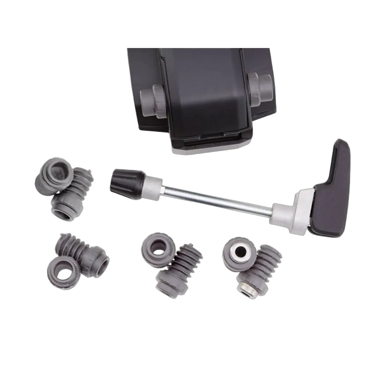 - Interchangeable inserts work with most axle configurations including quick release (9 mm) and thru-axles (12 x 100 mm, 15 x 100 mm, 15 x 110 mm, 15 x 135/142/150mm)
