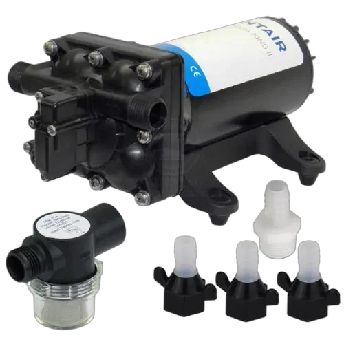 Shurflo Aqua King II Fresh Water Pumps are designed for boats with multi-fixtures providing Just like home shower pressure, and can operate at lower flow conditions without cycling.