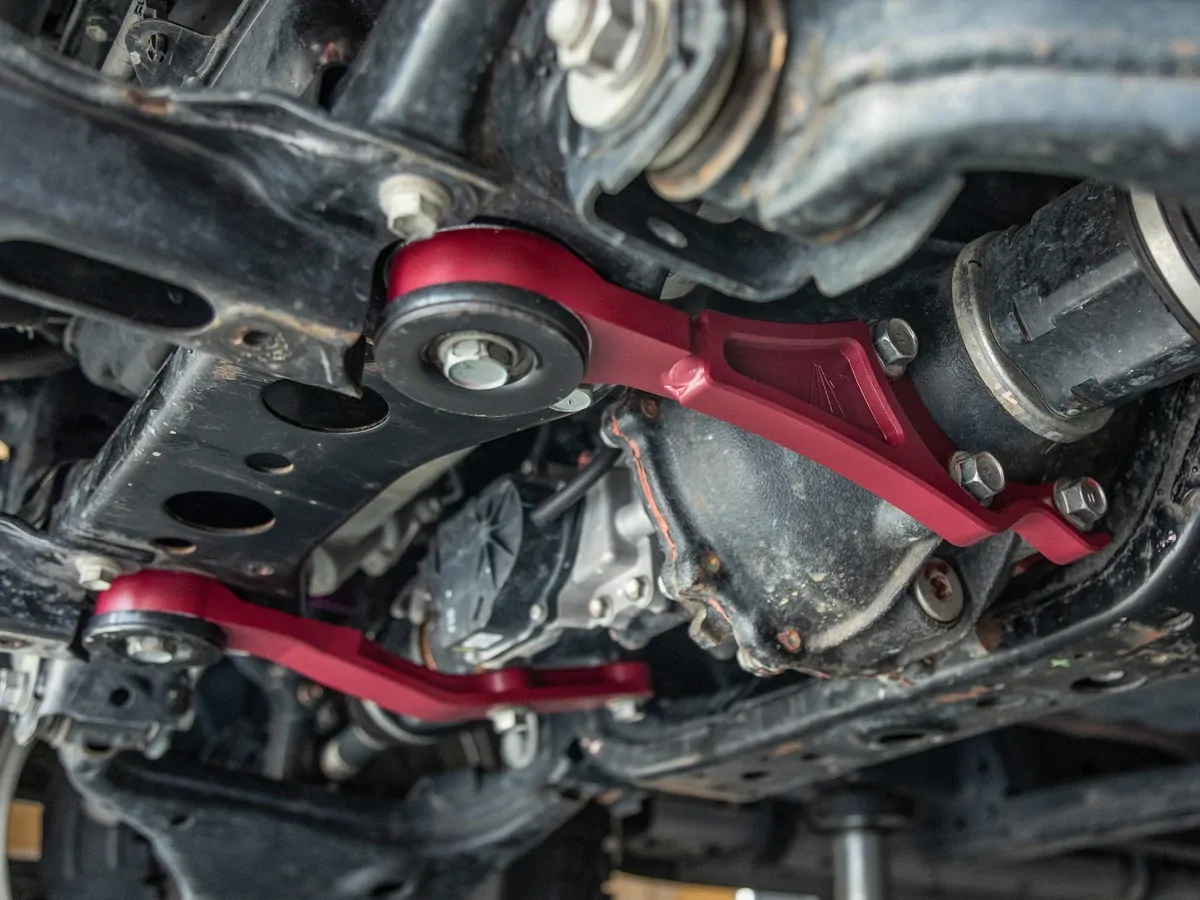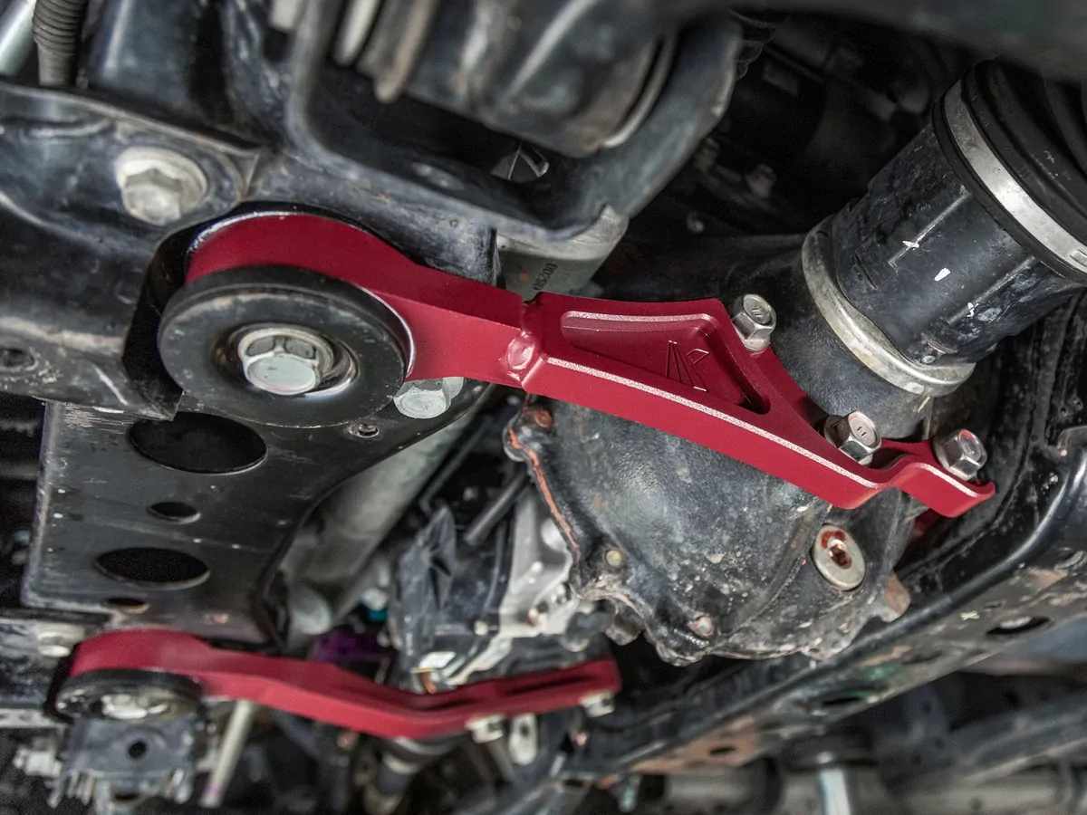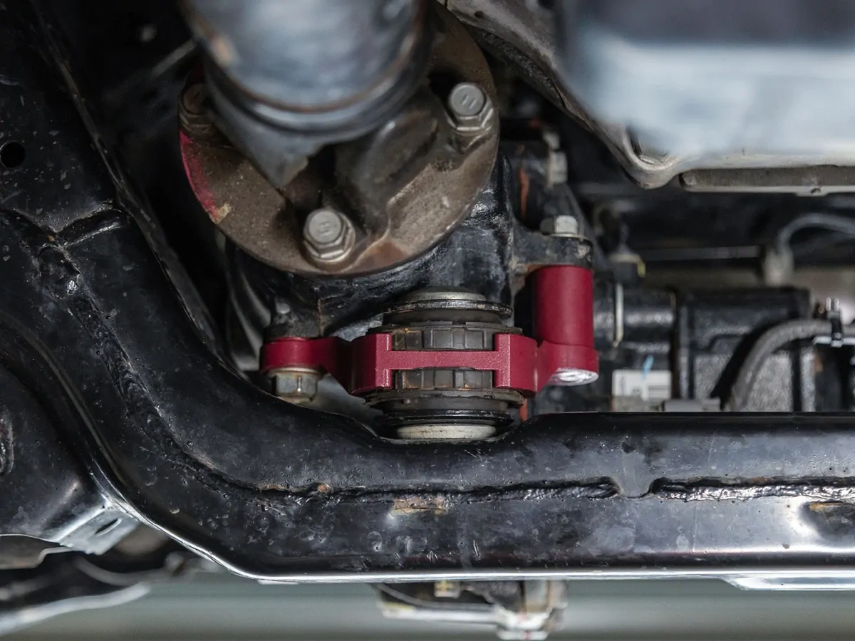 - Large diameter polyurethane bushings are designed to match factory stiffness and damping.