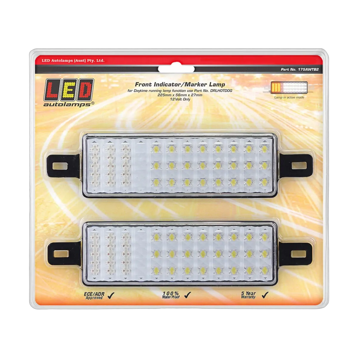 Front Indicator / Marker Lamp, 12 Volt Only, 225Mm X 56Mm X 27Mm, Blister(Use Part# Drlhotdog To Convert To Daytime Running Lamp). Twin Blister.