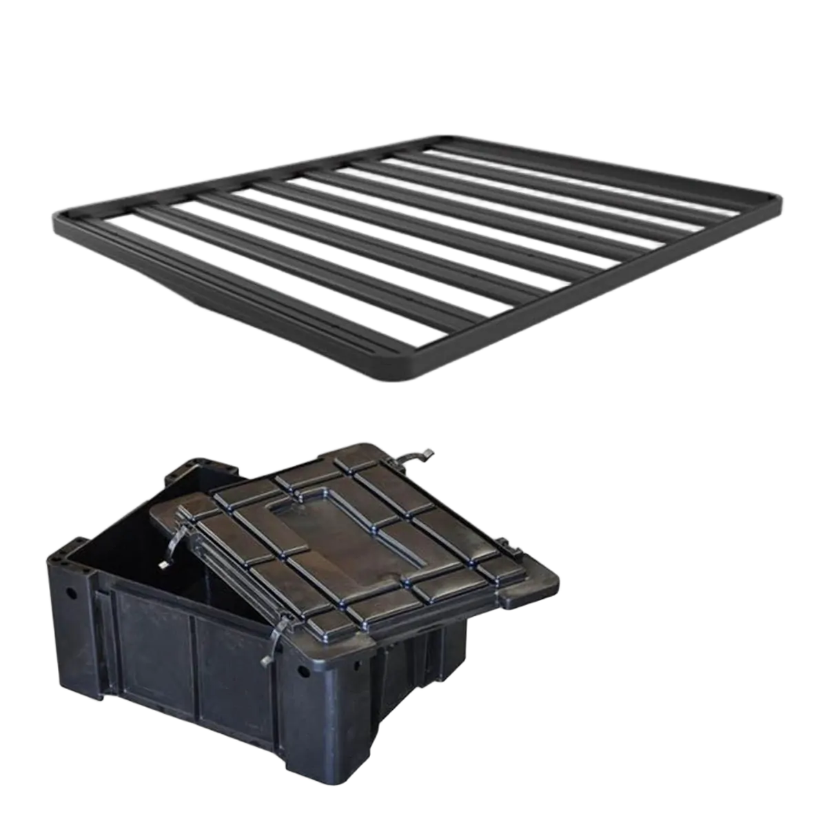This kit creates a full-size rack that sits above your Chevrolet Silverado Crew Cab / Short Load Bed, truck bed and contains the Slimline II tray (1575mm x 1560mm), 2 Tracks, and 6 Pickup Truck Bed Universal Legs that fit into the Tracks.