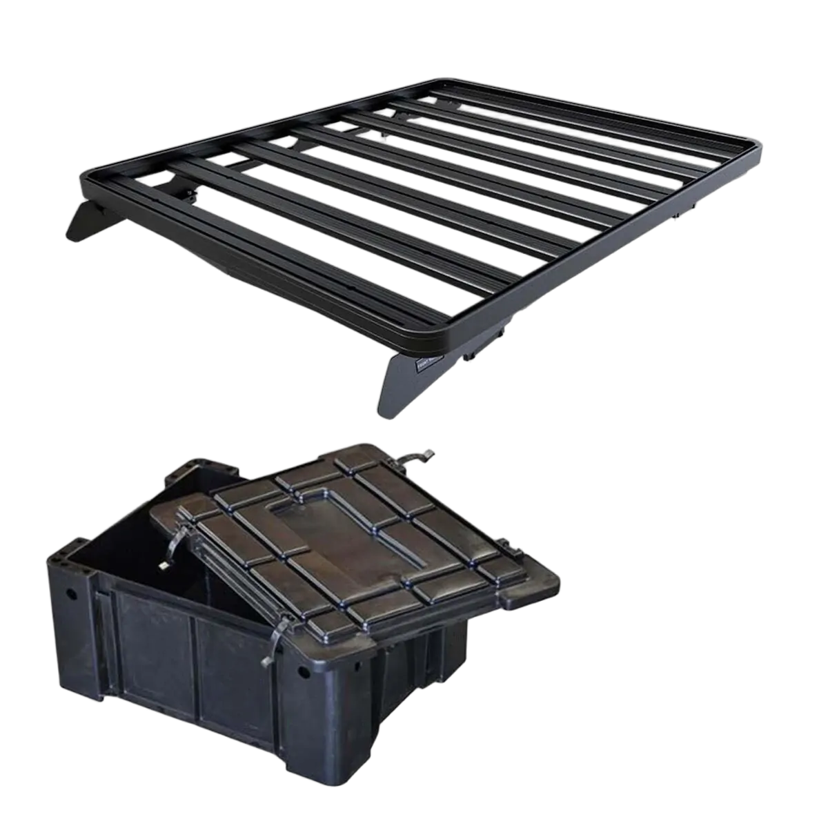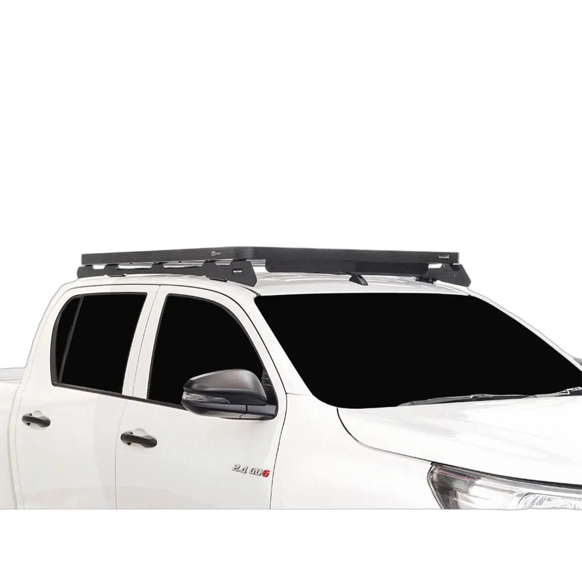 This 1358mm/53.5" long, full-size, Slimline II cargo roof rack kit contains the Slimline II Tray, Wind Deflector and 2 Low Profile Foot Rails to mount the Slimline II Tray to your Toyota Hilux Revo 2016+. Drilling is required for installation.