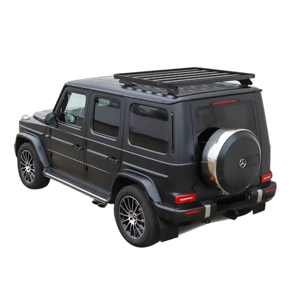 This 1964mm/77.3” long full-size Slimline II cargo roof rack kit contains the Slimline II Tray, Wind Deflector and 2 Foot Rails to mount the Slimline II Tray to your G-Class. Easily installs using the existing factory mounting points. No drilling required.