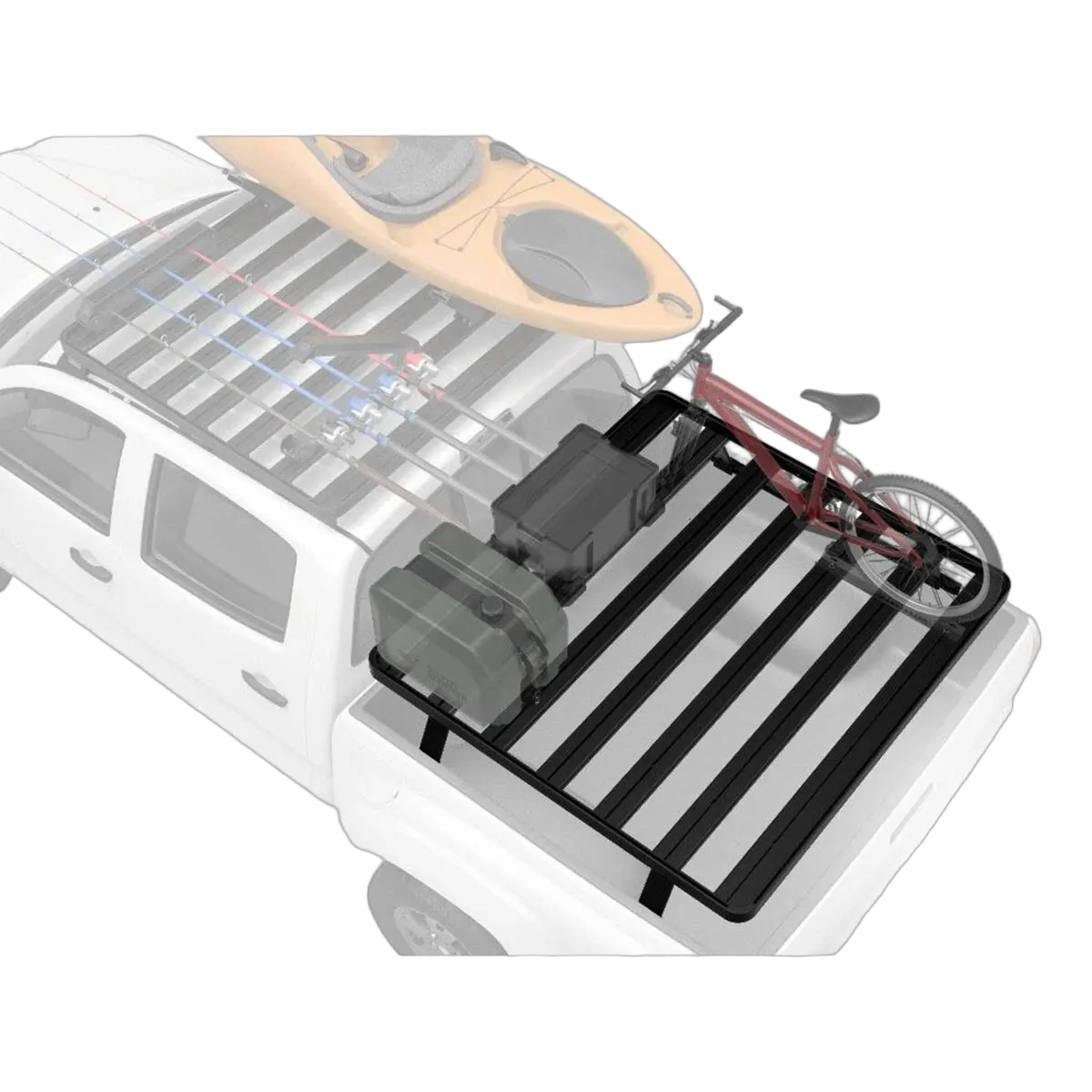 This kit creates a full size rack that sits above your Toyota Tundra Access Cab 2-Door (1999-2006)'s truck bed. This Slimline II cargo carrying rack kit contains the Slimline II tray (1475mm/58.1" (W) x 1358mm/53.5" (L)), 2 Tracks, and 4 Pickup Truck Bed Universal Legs that fit into the Tracks. Drilling is required for installation.