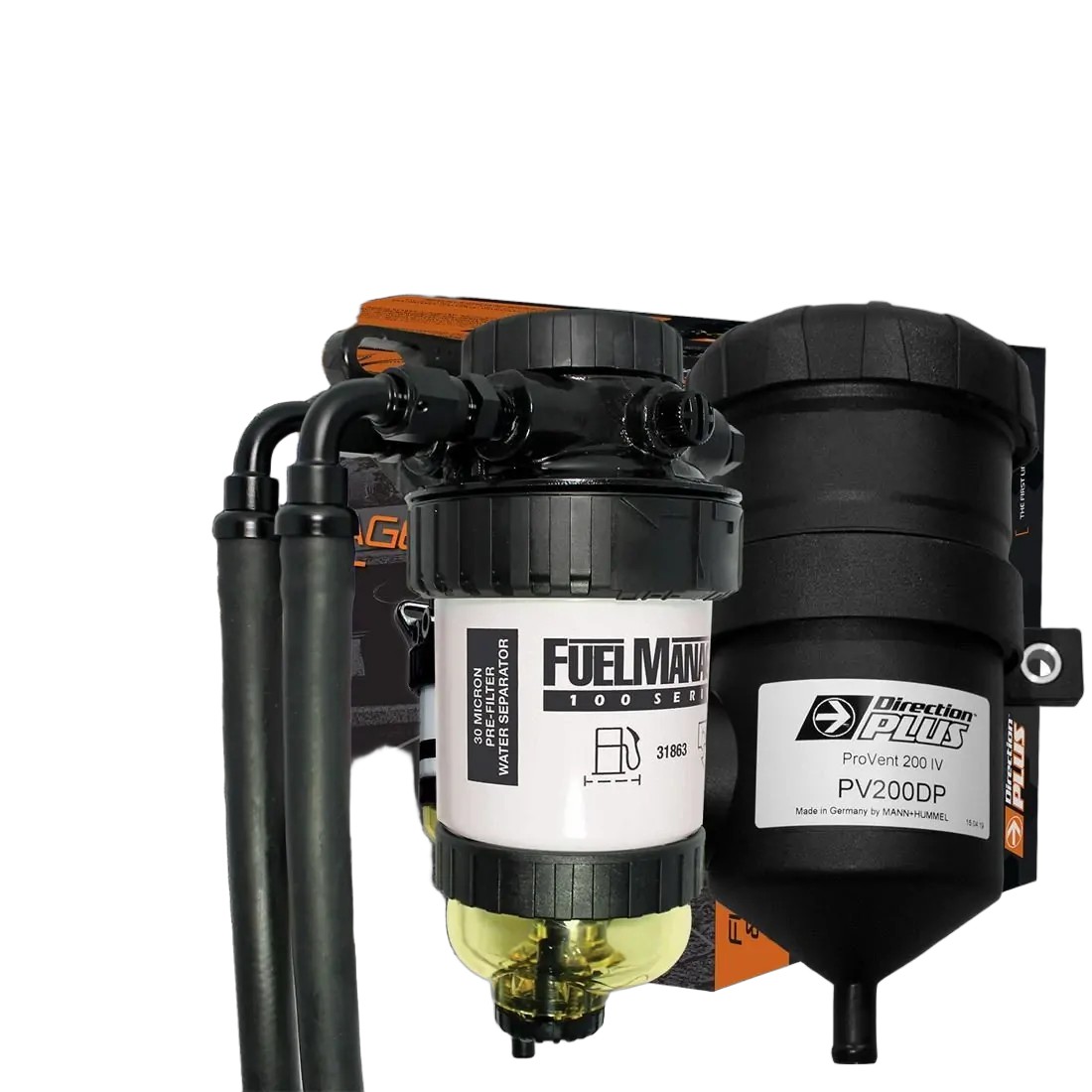 Direction Plus™ Pre-Fuel Filter will be installed between the fuel tank and the O.E.M fuel filter which will remove the majority of water and particle contamination, leaving the O.E.M fuel filter to do the final and finer filtration. This ensures you are maximising the protection of your diesel fuel system.