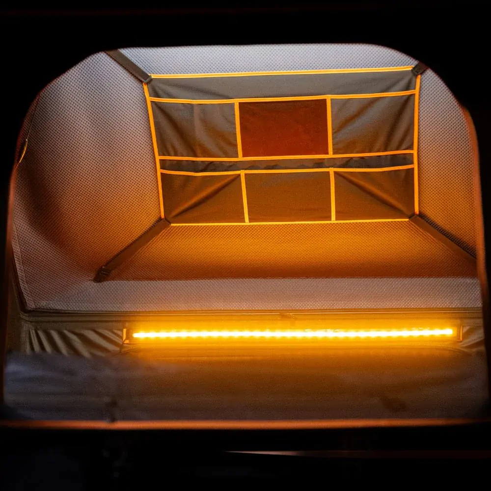 - Dimmable LED lighting system (white and amber) built into the interior for versatile illumination while keeping insects away.