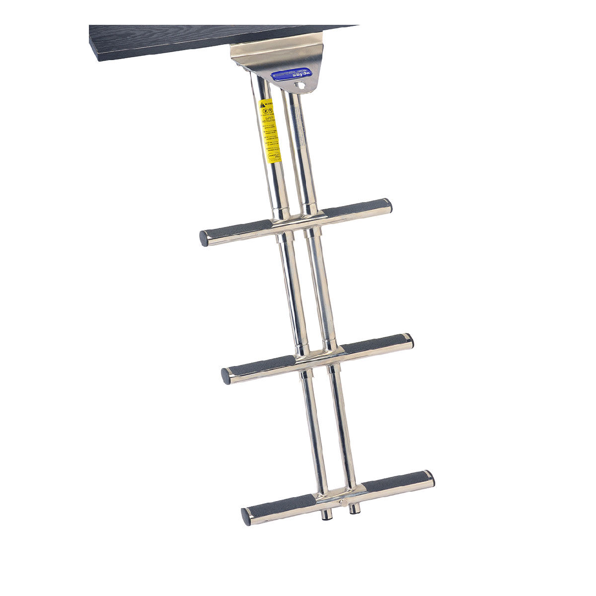 Three step, fold down telescopic boarding ladder designed to be under platform mounted. Centre post design allows better usability.