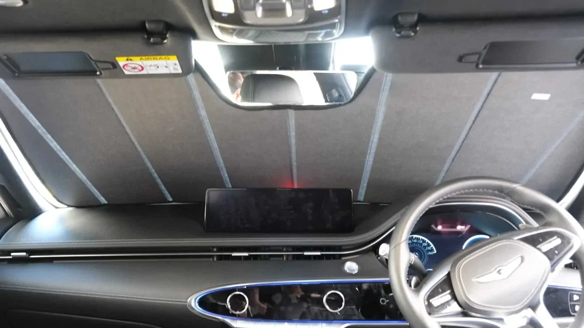 Note: Our custom sun shades block out a significant amount of light and UV rays that enter from the front windscreen, however due to the angle of the front windscreen and additional sensors or different mirror shapes/sizes available for different models, there may be slight gaps around your rear-view mirror or sides to allow the sun shade to fit.