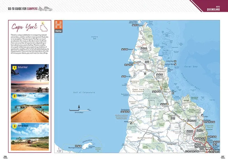 Hema’s Go-To-Guide for Campers was the second release in Hema’s ‘Go-To’ series which contains Go-To guides for Motorhomes, Caravans, 4WDs and Boats. This guide was produced in collaboration with the industry-leading magazine Camper Australia.This publication is an informative introductory guide for those who plan on using a Camper Trailer or rooftop tent to travel around Australia. It covers a range of topics including; Trip PlanningPreparationEquipment & GadgetryMaintenance & DIYSafety & SecurityFood & FrivolitiesInspiring DestinationsHema’s Go-To-Guide for Campers has been produced by industry experts, is presented in a clear and easy to understand format and of course provides a selection of Hema’s award winning maps.From windswept grey nomads to sun-kissed newly-weds, Hema's Go-To Guide for Campers is a vital companion for every kind of camping enthusiast.