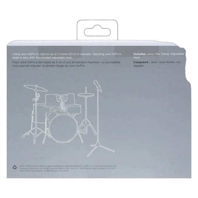 Clamp your GoPro to objects ranging in size from 0.25 to 2in (0.6 to 5cm) in diameter Removable neck allows for a wide range of camera-angle adjustability Camera can be attached directly to clamp for lower-profile mounting Adjustable strap enables a secure grip on irregular shapes and objects as thin as a pencil Quick release bases make it easy to move camera between different mounts and locations Compatible with all GoPro quick release mounting systems WHAT'S IN THE BOX