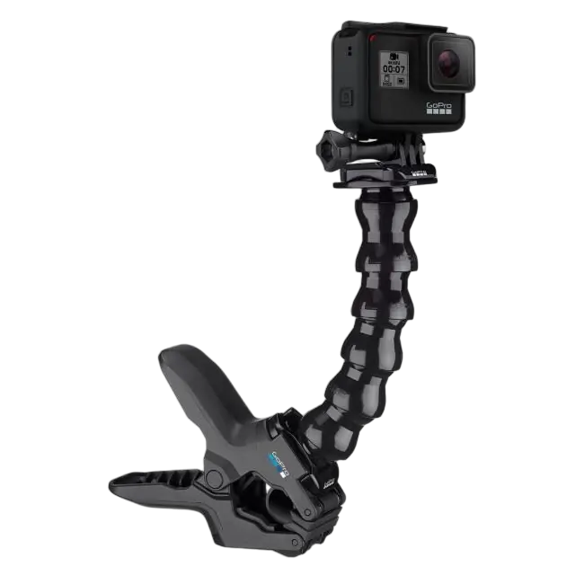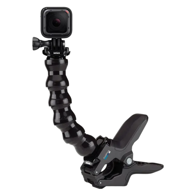 Clamp your GoPro to objects ranging in size from 0.25 to 2in (0.6 to 5cm) in diameter. Attach your camera directly to the clamp for low-profile mounting, or use the optional neck to achieve a wider range of camera-angle adjustability. Jaws securely grips irregular shapes and super slim objects thanks to its innovative design.