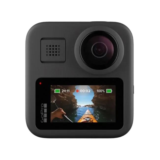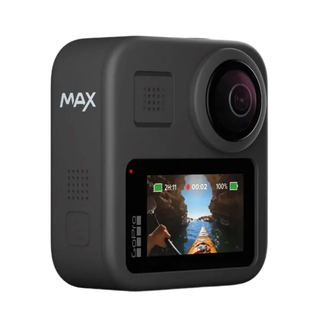 Three Cameras in One Maximise your creative freedom. With MAX you can shoot traditional HERO-style video and photos or capture immersive 360° footage. Vlog to the max with shotgun-mic and a front-facing screen.