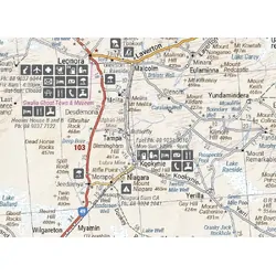 The Great Desert Tracks Western Sheet covers from beyond Derby in the north to Norseman in the south, and from Halls Creek in the east to Marble Bar in the west. Marked on the mapping are roads and 4WD tracks checked by the Hema Map Patrol, distance markers, topographical relief and touring points of interest including 24-hour fuel, camping areas and caravan parks, facilities, services and more. Also included is information on travelling in the desert, what you need for the trip and relevant contact information.