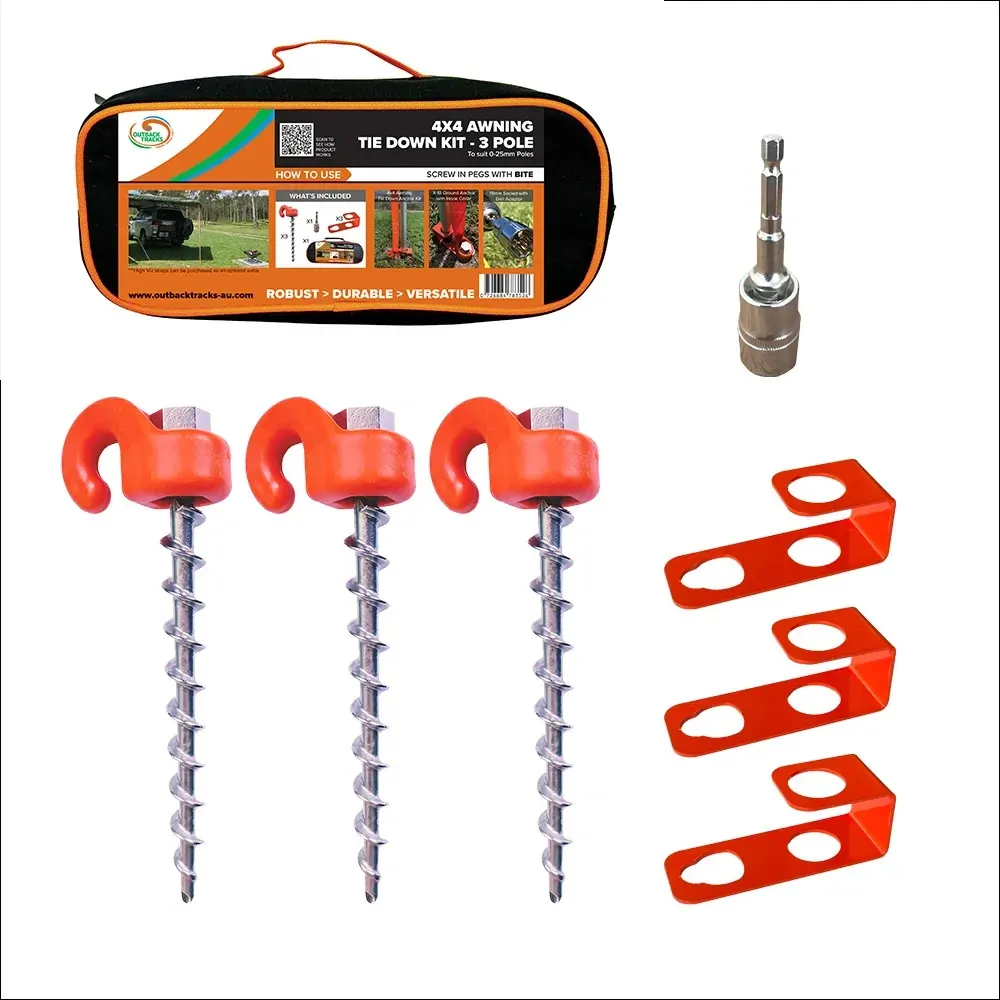 4×4 Awning Tie Down Kit (3 Pole) to suit 0-25mm Poles