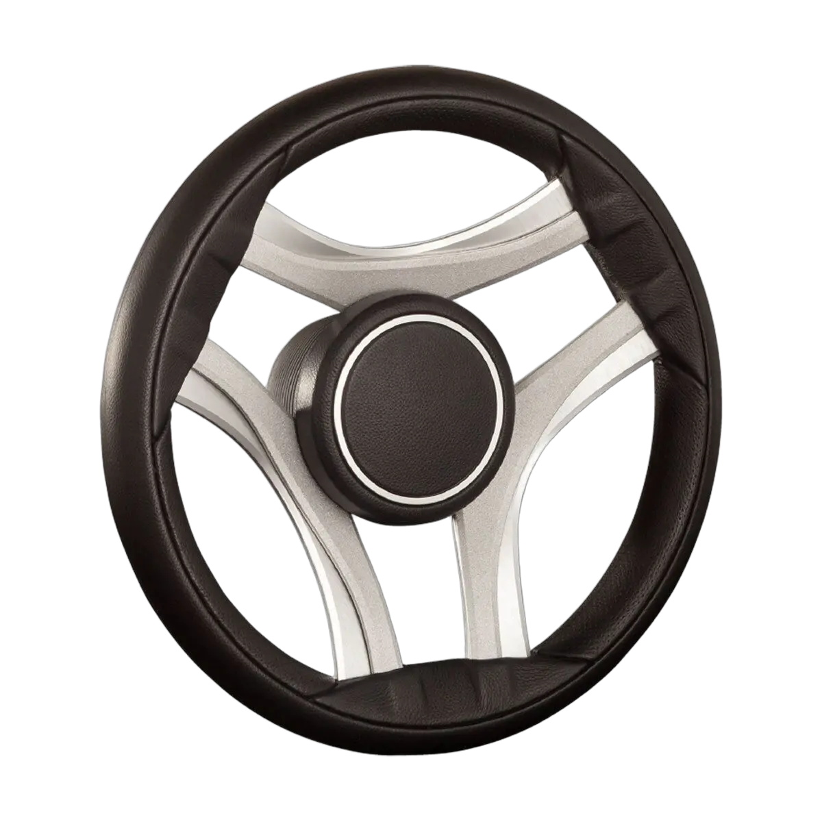 Double aluminium spoke with black polyurethane rim (35cm diameter). Suits a standard 3/4″ tapered shaft.