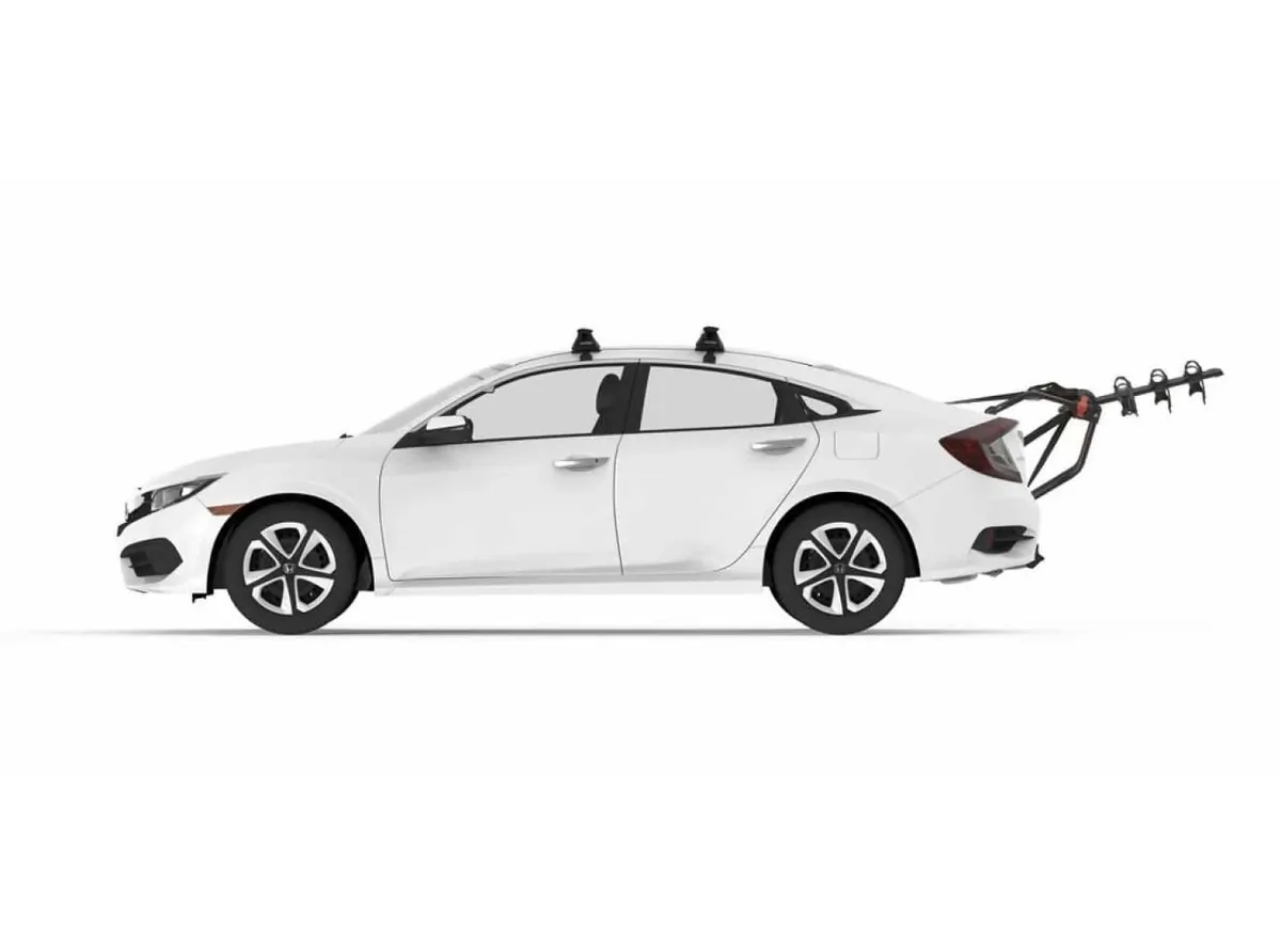 Super simple and built to last, the new HangOut offers grab-and-go bike carrying convenience for almost any vehicle. The adjustable strap system and QuickTrigger™ hub make installation easy, and the padded feet and coated metal buckles protect your vehicle's paint. Integrated StableCradles™ secure your bikes for a confident carry and make loading and unloading a piece of cake. When you aren't off adventuring, the HangOut folds flat for compact storage.