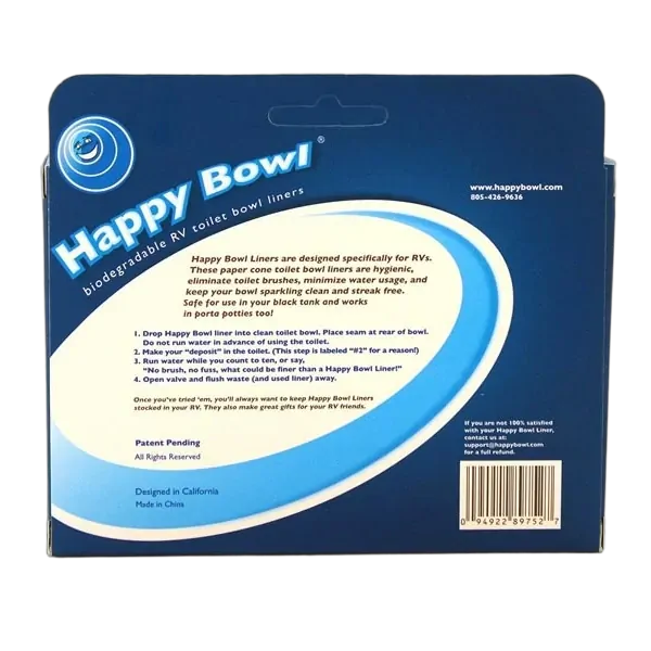 Happy Bowl cassette toilet liners are produced specifically for motorhomes and caravans. We know that using the portable camping toilet can be a risky move after a big night with the van neighbours. Carrying toilet brushes and chemicals can become annoying, especially when trying to save on space. With these paper cone designs from Happy bowl, toilet liners are a hygienic option for those who don’t want to waste time cleaning the portable camping toilet. Happy bowl toilet liners minimise water usage and will keep your bowl sparkling clean.