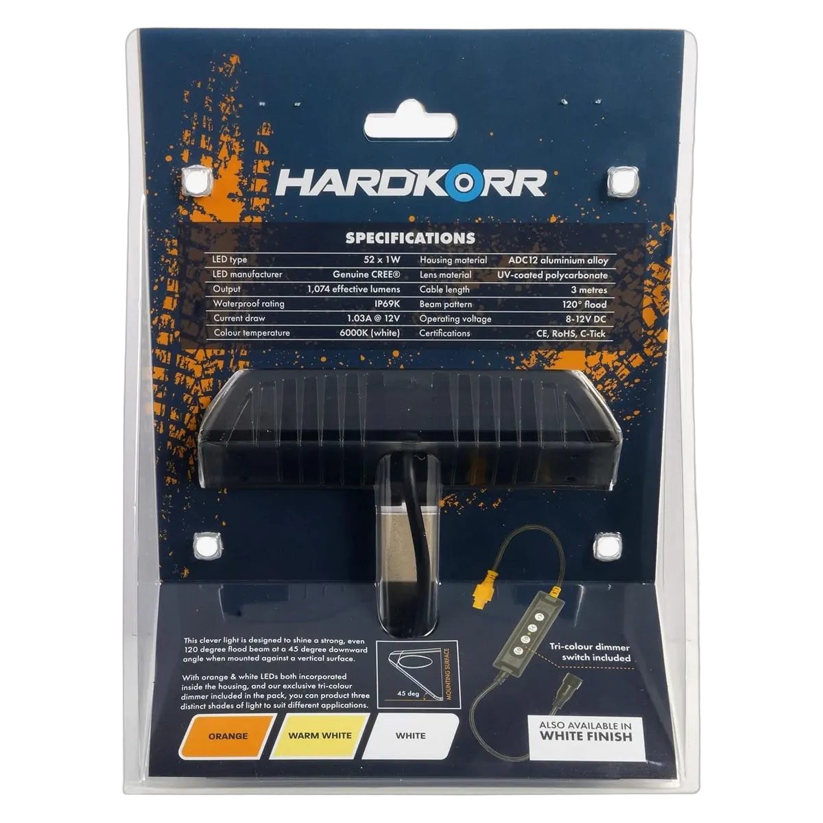 Hardkorr’s XDW work lights use genuine CREE® LED chips for consistent colour and brightness. The precision-engineered reflectors spread light evenly across a 120° beam, giving excellent coverage for camp setups or vehicle work areas. Their IP69K rating means they can handle full dust exposure and even high-pressure water jets.