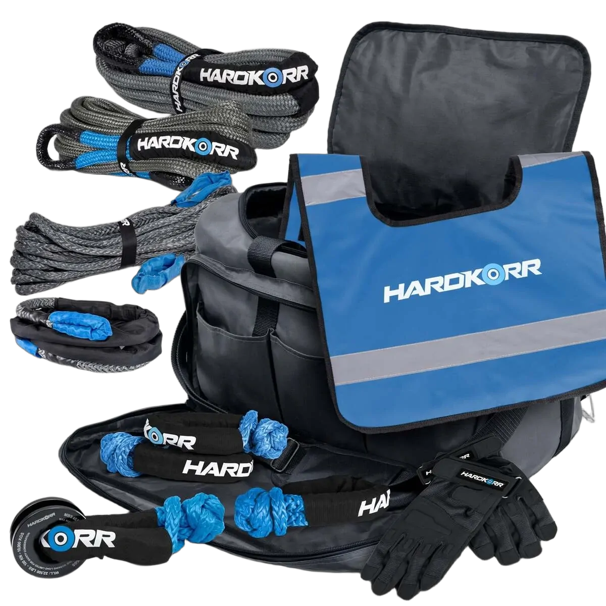 Introducing the Ultimate Off-Road Recovery Kit by Hardkorr. This comprehensive kit is packed with all the essential tools and accessories you need for successful vehicle recovery.