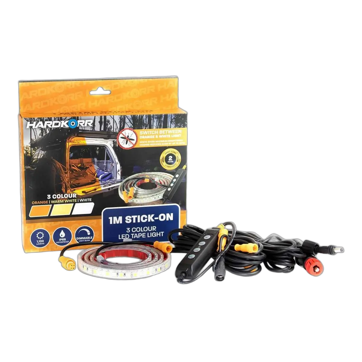Both orange and white LEDs are built into the single strip light, and with our exclusive tri-colour dimmer you can now produce three shades of light: cool white, warm white and orange! The cool white light provides maximum brightness, whereas the new warm white setting gives off a light that is almost as bright as cool white, but with a pleasant soothing warmth. It’s perfect for setting a calm, happy mood in your campsite, particularly later at night. Finally, switching to the orange light naturally reduces the presence of bugs by up to 90%, and is particularly useful around food preparation and eating areas.
