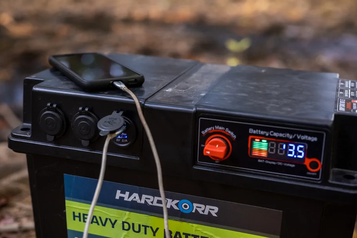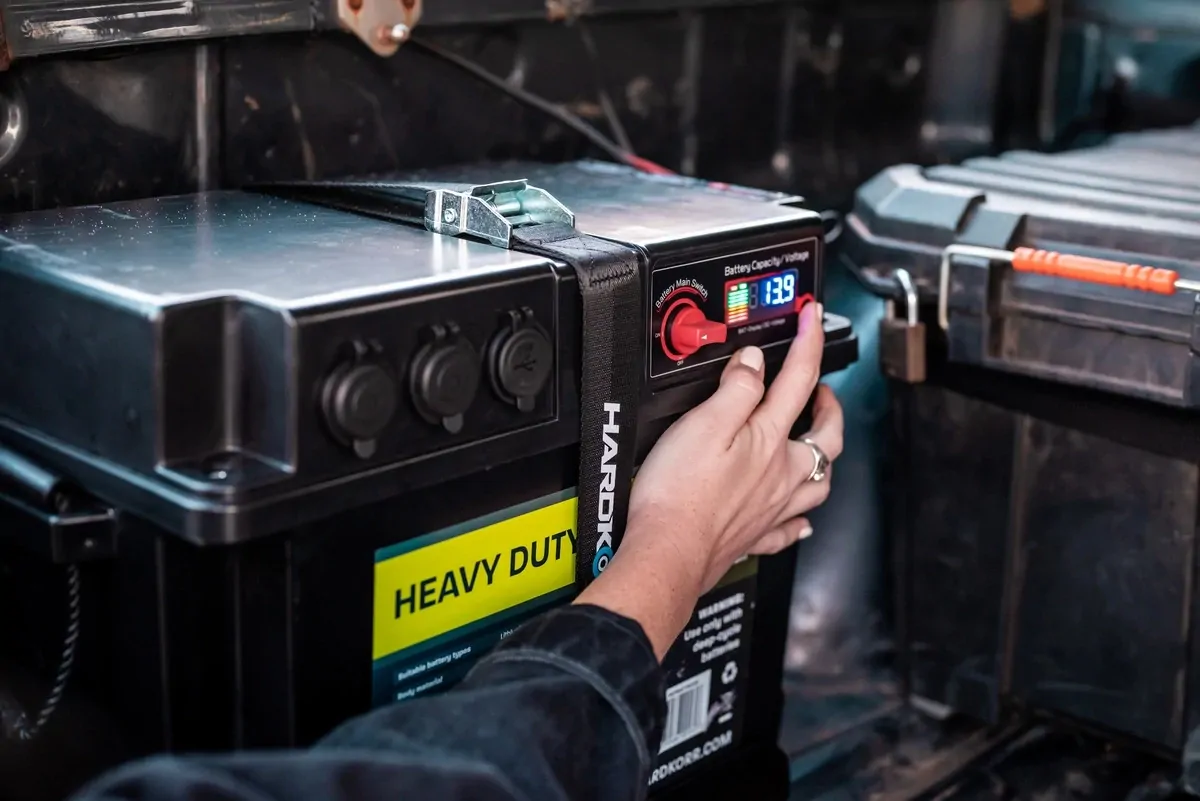 Constructed of durable ABS plastic and meeting the UL 94V-0 standard for flammability of plastic products, this battery box is a high-quality unit that will last for many years. It contains two 12v outlets with 10A fuses, a dual USB outlet, four 50A Anderson-style outlets that can be used as outputs or inputs, and a 175A Anderson-style outlet which can be used as a jump-starter. Unlike most other models on the market, all Anderson-style ports are recessed into the body to minimise the possibility of damage, and the internal cabling uses heavy-gauge wire and quality connectors. This plug and play system is so user friendly that anyone can set it up. A good quality battery will last year's inside a Hard Korr battery box. The battery can be charged from a range of sources (including solar panels) by simply plugging into one of the 50A Anderson-style ports. The battery’s charge status and voltage can be easily seen via the large digital display.