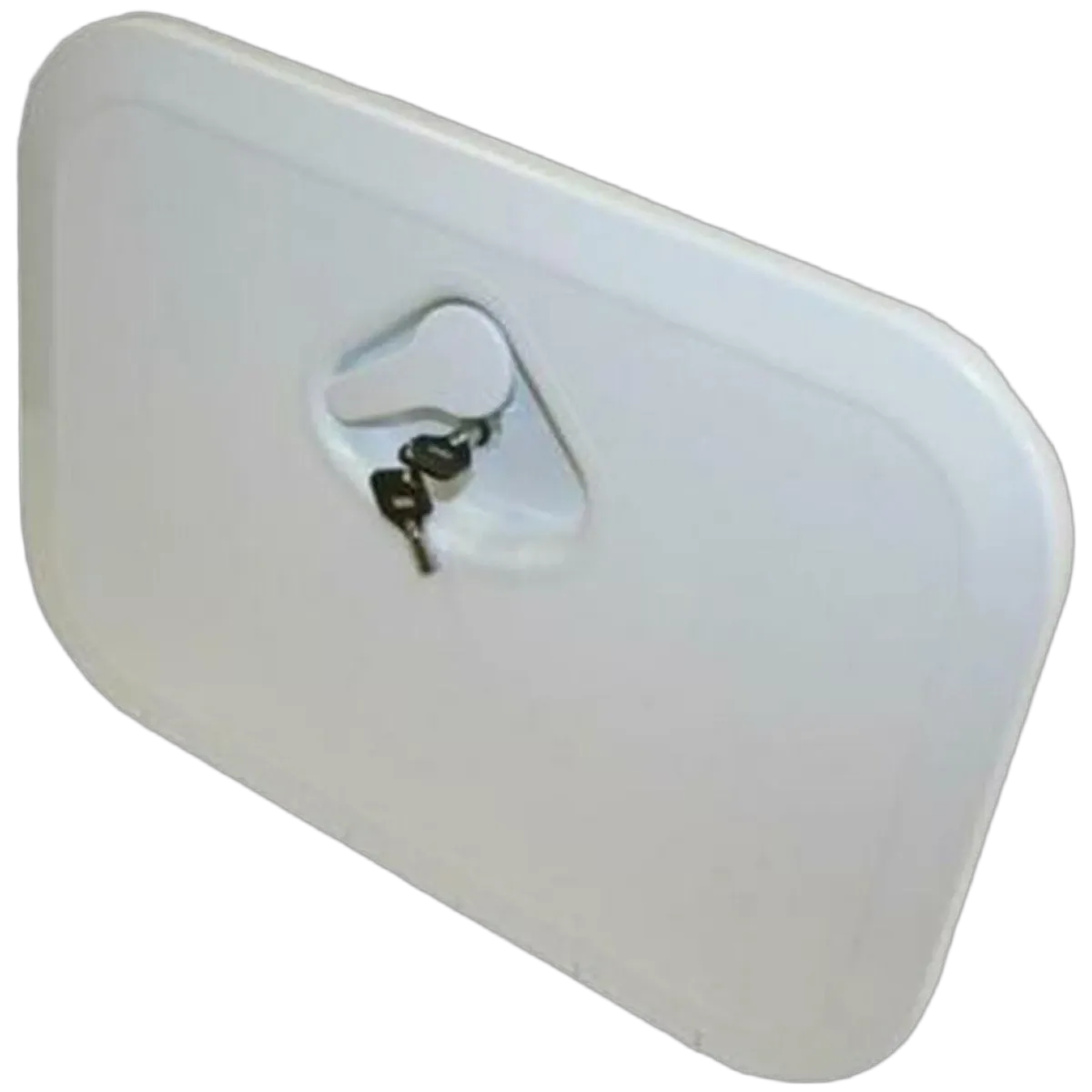 A range of deluxe storage hatches from Nuova Rade of Italy. Made from UV inhibited ASA material. Featuring reinforced construction, full 180 degree door opening and screw holes completely covered by the lid for an attractive flush finish. Strong recessed handles. Designed for mounting vertically - only the two small sizes - A and B can be floor mounted where they may be walked on.