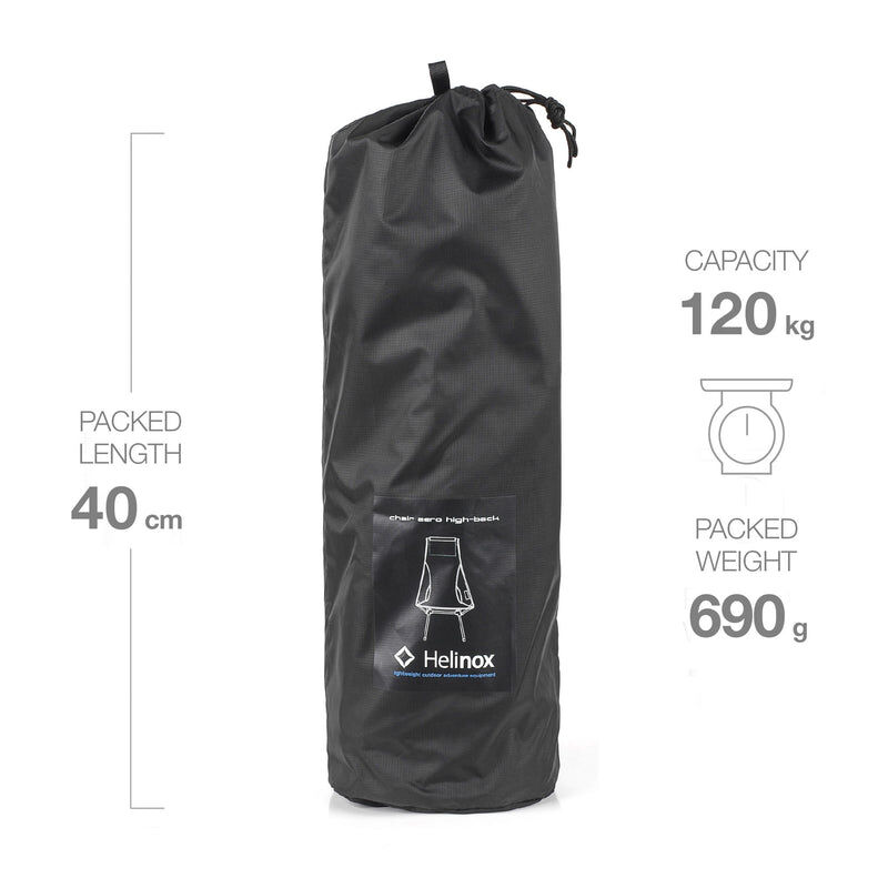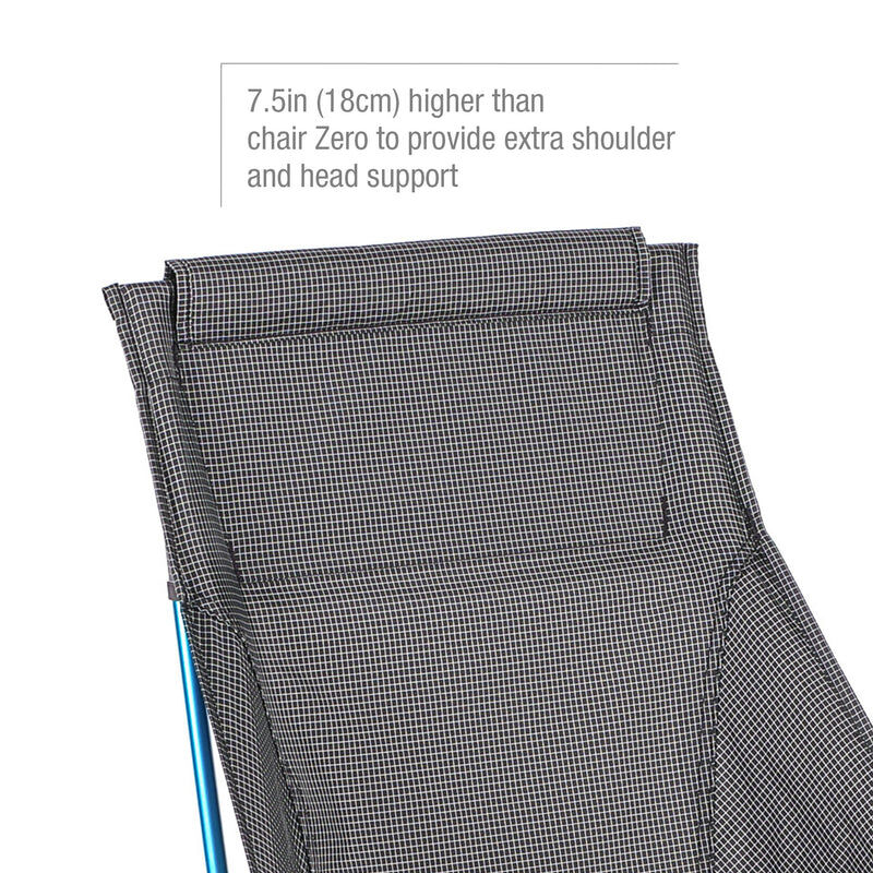 17cm taller back than the Chair Zero, providing ample shoulder and head support. Leg poles are 4mm larger in diameter to accommodate the increased back height.