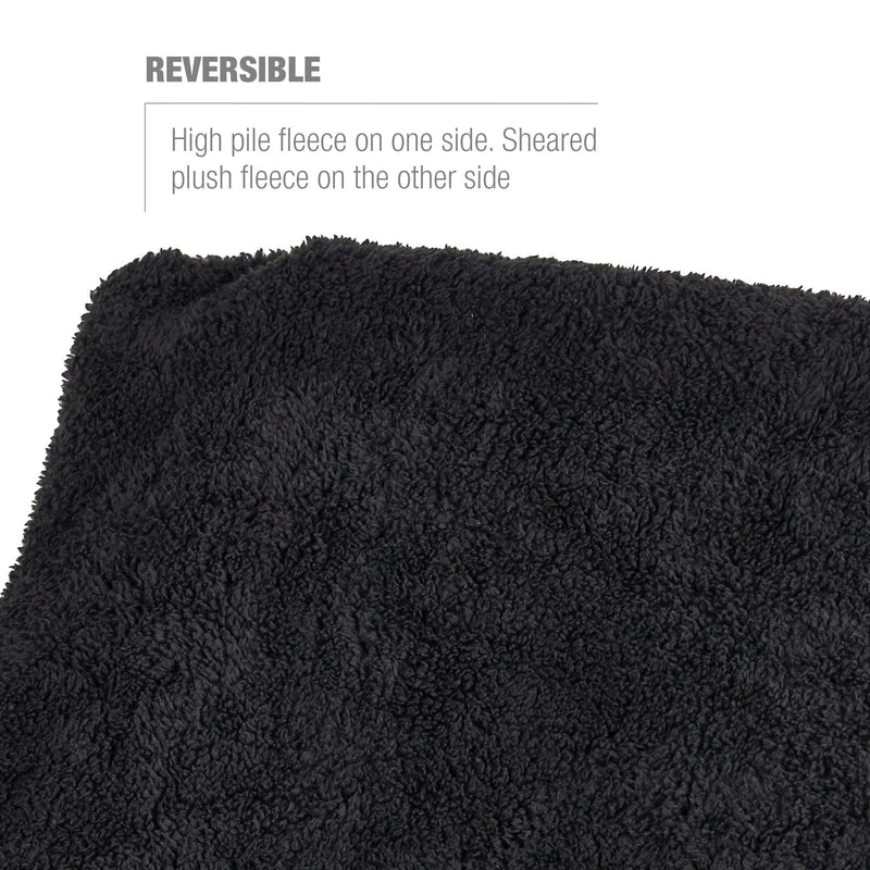 Extra-soft high-pile fleece on one side, sheared plush fleece on the other.