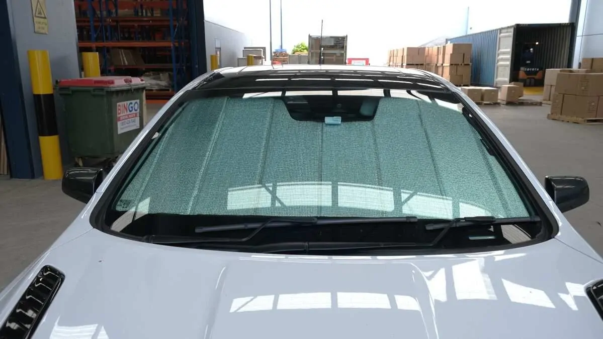 Note: Our custom sun shades block out a significant amount of light and UV rays that enter from the front windscreen, however due to the angle of the front windscreen and additional sensors or different mirror shapes/sizes available for different models, there may be slight gaps around your rear-view mirror or sides to allow the sun shade to fit.