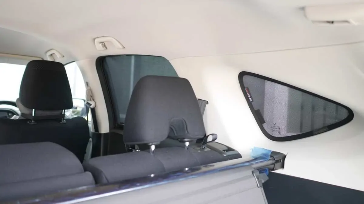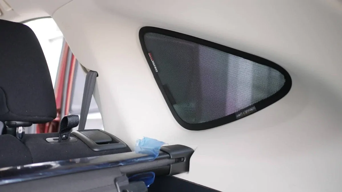 Note: Our custom sun shades block out a significant amount of light and UV rays that enter from the front windscreen, however due to the angle of the front windscreen and additional sensors or different mirror shapes/sizes available for different models, there may be slight gaps around your rear-view mirror or sides to allow the sun shade to fit.