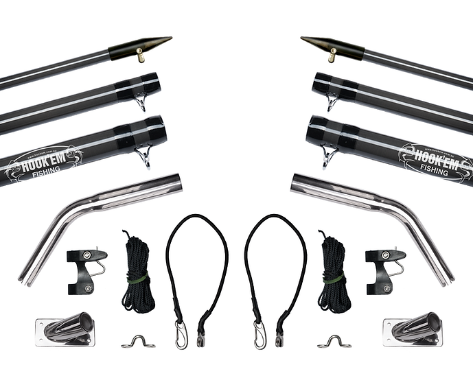 Kit: Hook'em Carbon Fibre Outrigger Kits arrive complete with everything required to rig and use your outriggers out of the box.  The poles are supplied with a storage bag to protect your valuable poles from damage while not in use. Speer Tips are now Anodised black aluminium with a built-in mini stainless steel roller.