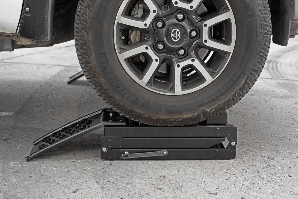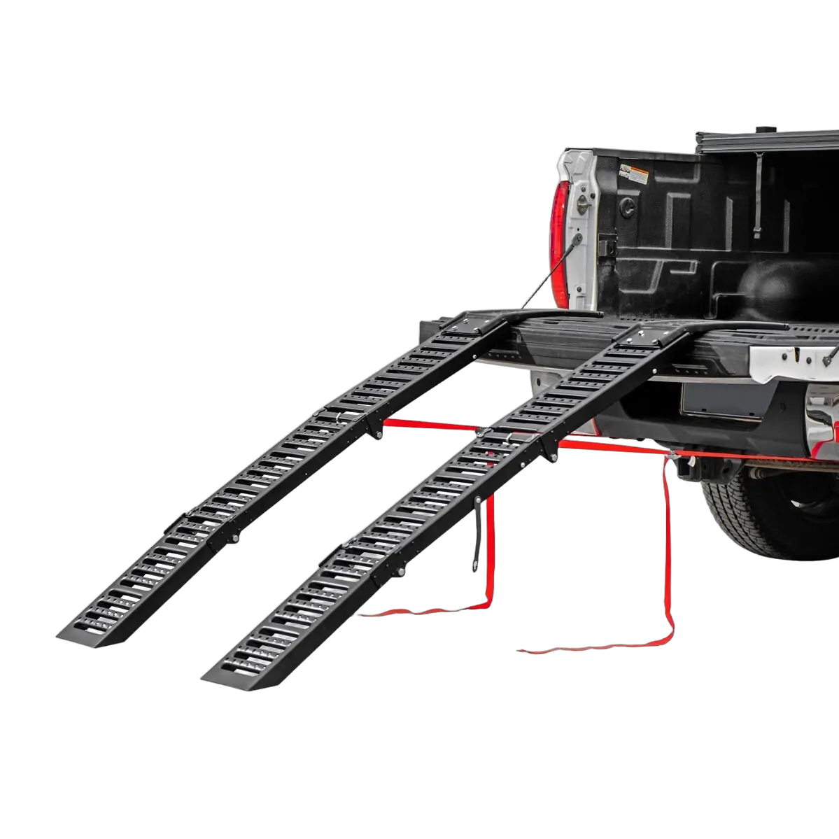 2-in-1 Multi-Use Steel Foldable Ramp Set helps safely load and unload equipment into your vehicle