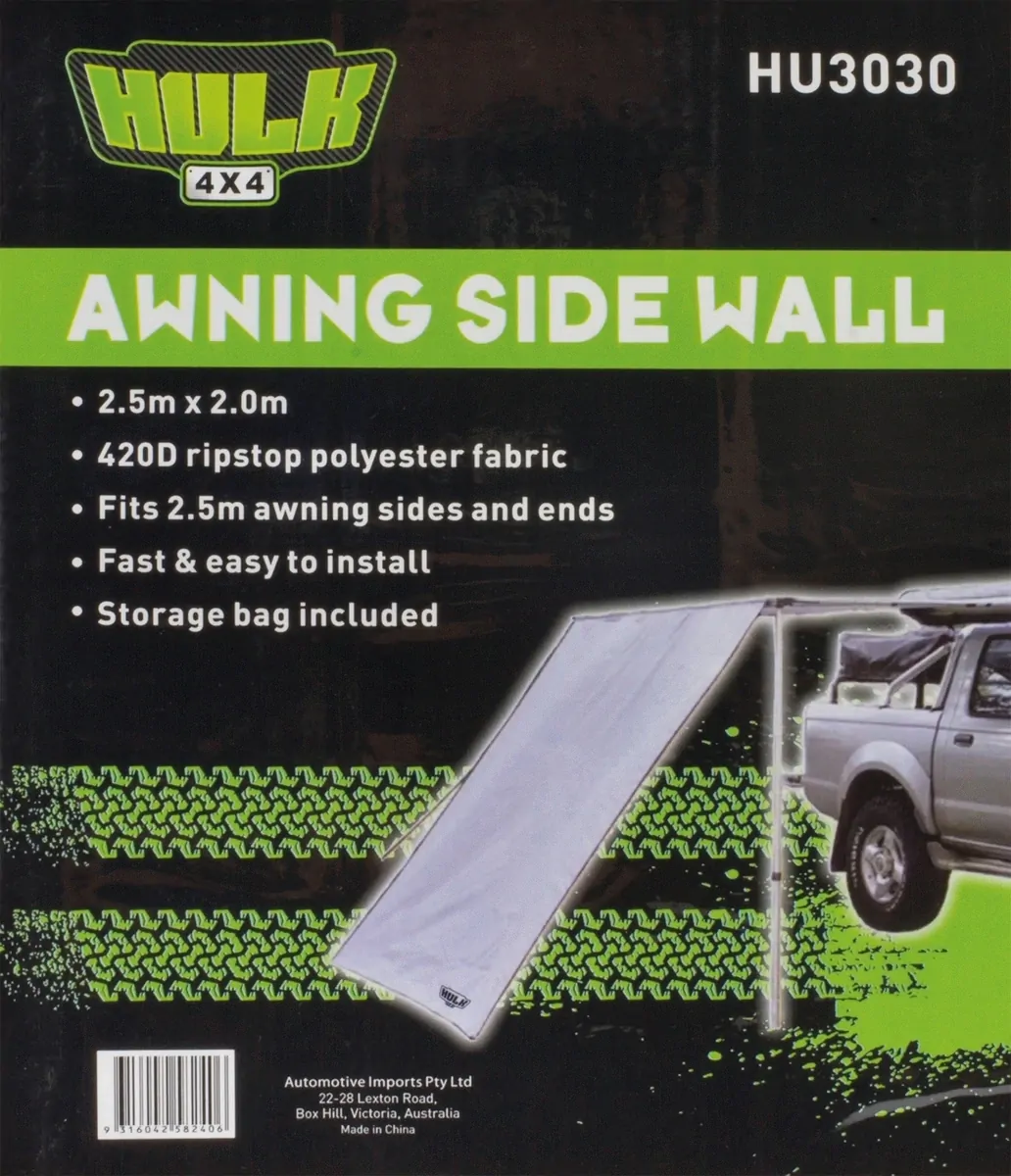 Hulk 4x4 Awning Side Wall Grey 2 X 2.5M With Storage Bag