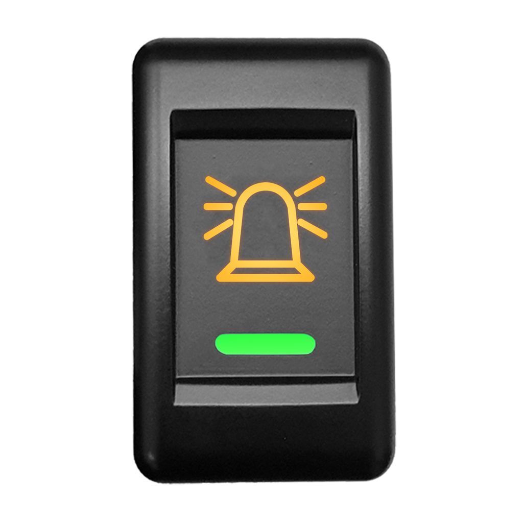 - Logo illuminates Amber via the dash light circuit, when the switch is pushed on, the lower LED window illuminates Green
