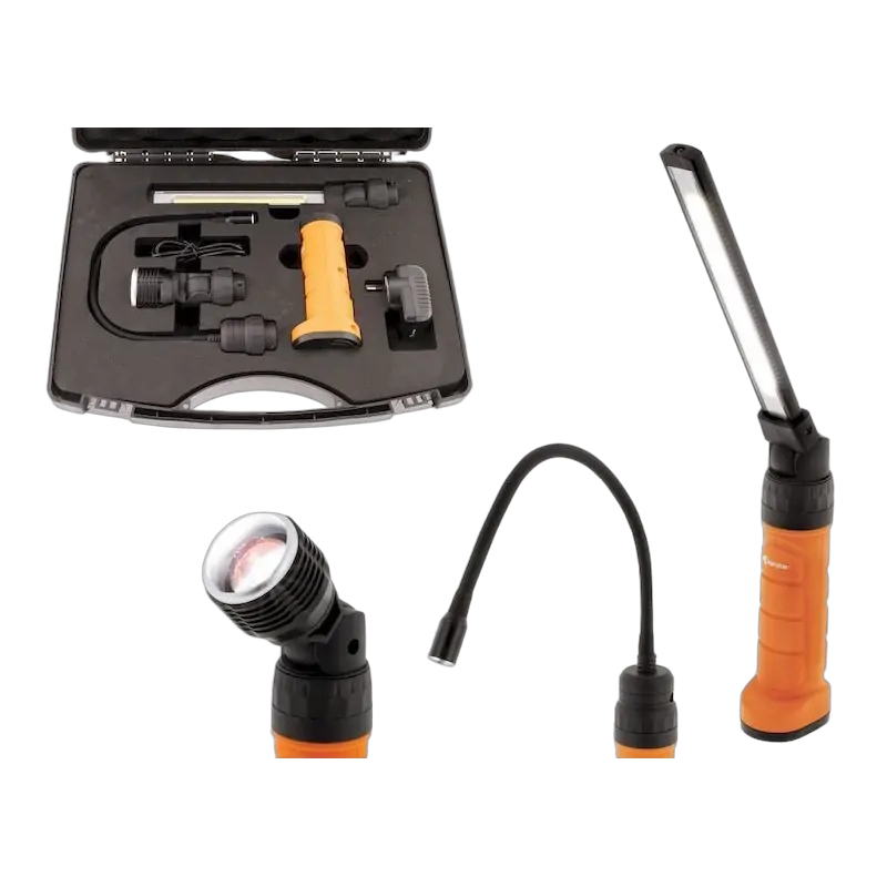 6W COB LED, 3 Changeable Light Heads - Torch, Inspection & Flood Lamp, Hook & Magnets At The Bottom, Bendable Body, Ip44 Rating