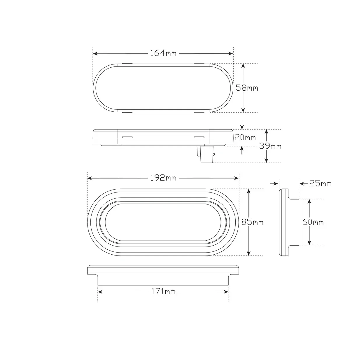 Rear Indicator Lamp With Rubber Grommet And Plug, Multivolt 164Mm X 57Mm. Blister, Adr Approved