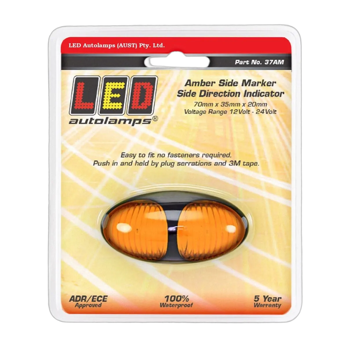 Side Direction Led Indicator, 70Mm X 35Mm X 20Mm, Amber Lens, Black Bezel, 40Cm Cable, Multi-Volt, Ece Approved, Blister Packing.