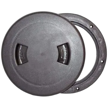 Inspection ports with textured fi nish and full cover lid for neat appearance, so the base cannot be seen when the lid is closed. Made from UV inhibited polypropylene material. Lid screws into threaded base.