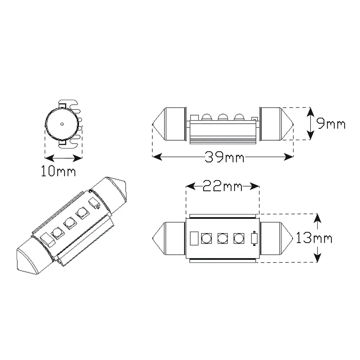 39Mm White Festoon Bulb, 12 Volt, 180 Effective Lumen, Canbus Compatible, Blister, 10 Year Warranty