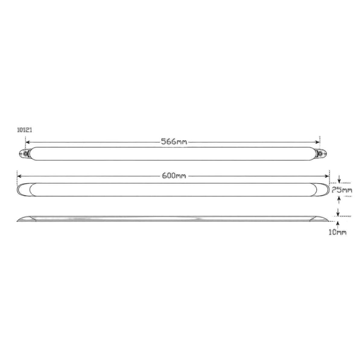 Led Interior Light. 24 Volt. 121Pcs Smd Leds Equivalent To 60 Watt Globe. Clear Lens With White Frame. 600 X 25 X 10Mm. Blister Pack.