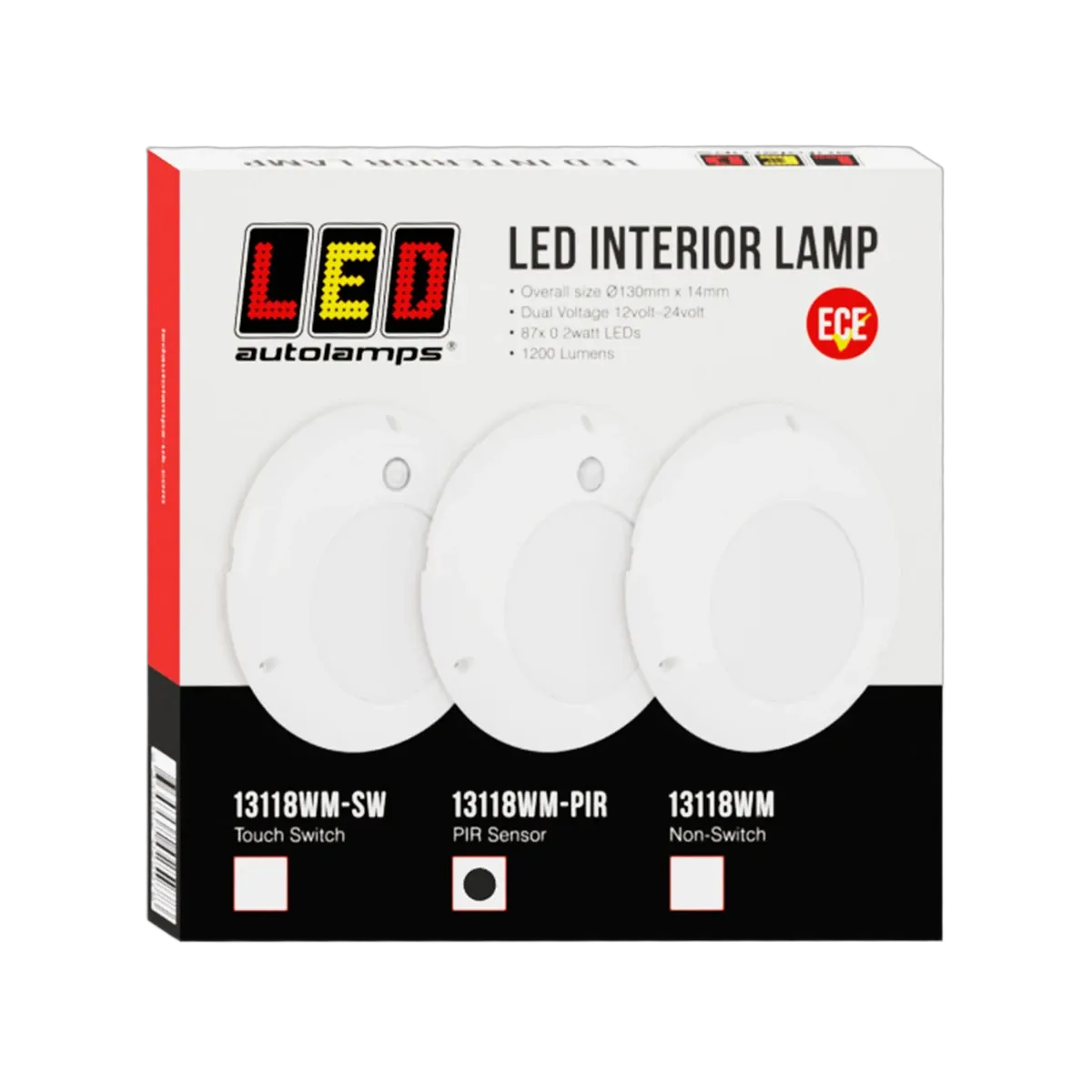 Large Round Interior/Exterior Lamp, White With Polycarbonate Lens/Cover And Aluminium Base And 20Cm Cable - Pir Sensor, 10-30 Volt, Ip67, 750 Effective Lumen, 4500K, 131Mm X 14Mm, Box, 2 Year Warranty