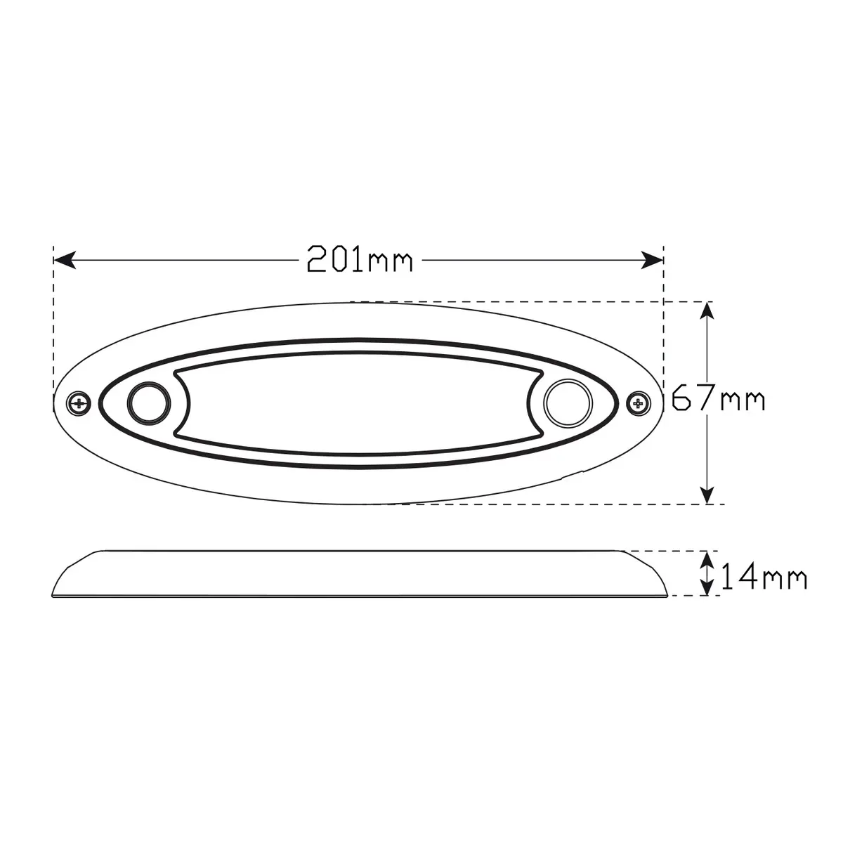 Large Oval Interior/Exterior Lamp, White With Polycarbonate Lens/Cover And Aluminium Base And 20Cm Cable - Non Switch, 10-30 Volt, Ip67, 400 Effective Lumen, 4500K, 201Mm X 67Mm X 14Mm, Blister, 2 Year Warranty