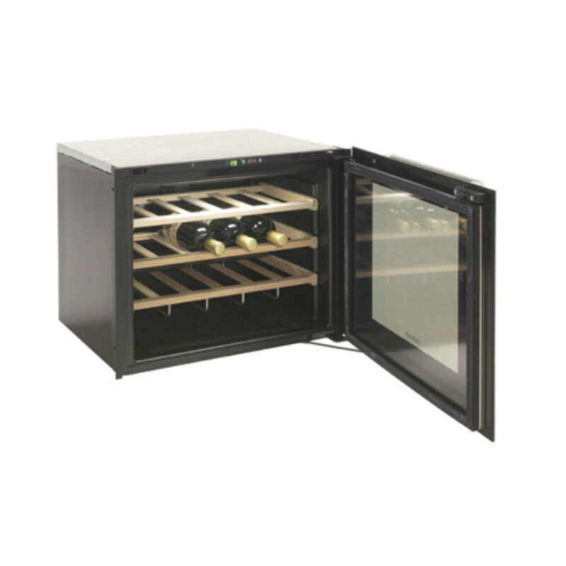 - Elegant glass door that allows perfect vision of the bottles