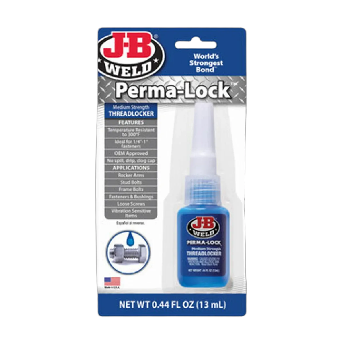 J-B Weld Perma-Lock Medium Strength Threadlocker Thread Locker Blue Mid Strength 13ml 261442 Ideal for fastener applications requiring easy disassembly with hand tools.1699