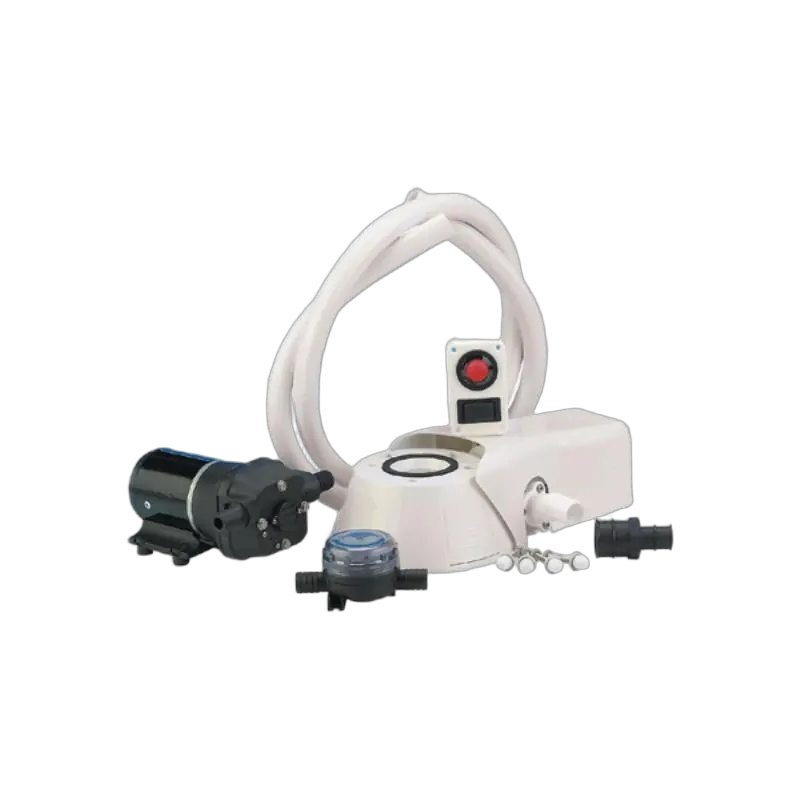 Includes Par-Max 4 electric diaphragm pump for salt water intake and other components required, ready to bolt on to your existing toilet bowl.