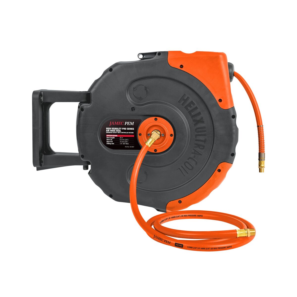 - Engineered for enhanced workplace safety, this high-visibility hose reel features the unique Helix Ultra-Coil hose layering system and a smooth, controlled return to significantly reduce the risk of dangerous hose whipping. Its bright, high-visibility hose and reel also provide an extra layer of safety by helping to prevent trips and other workplace hazards.